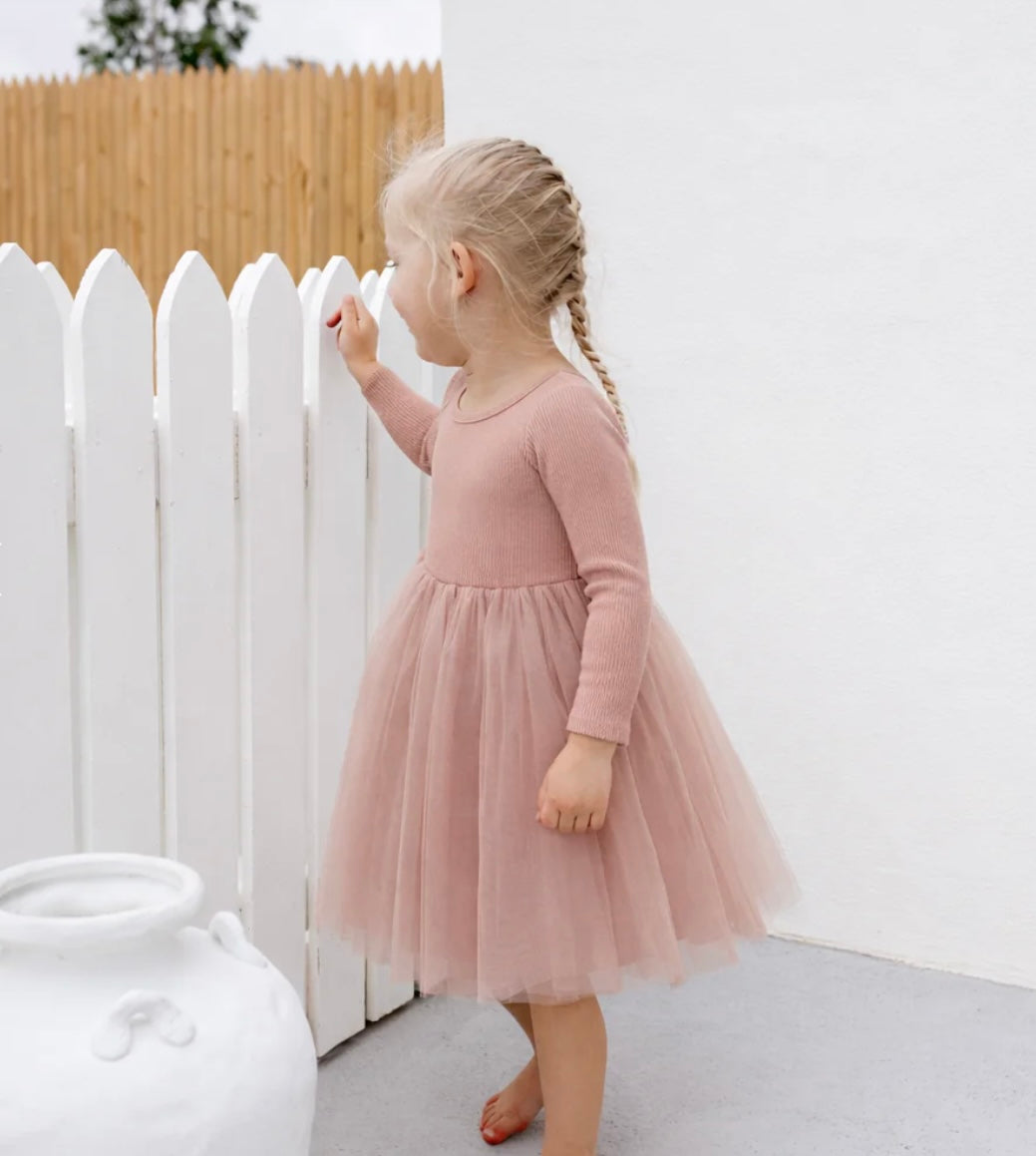 Confetti Kidz Dusty Pink Long Sleeve Tulle Dress