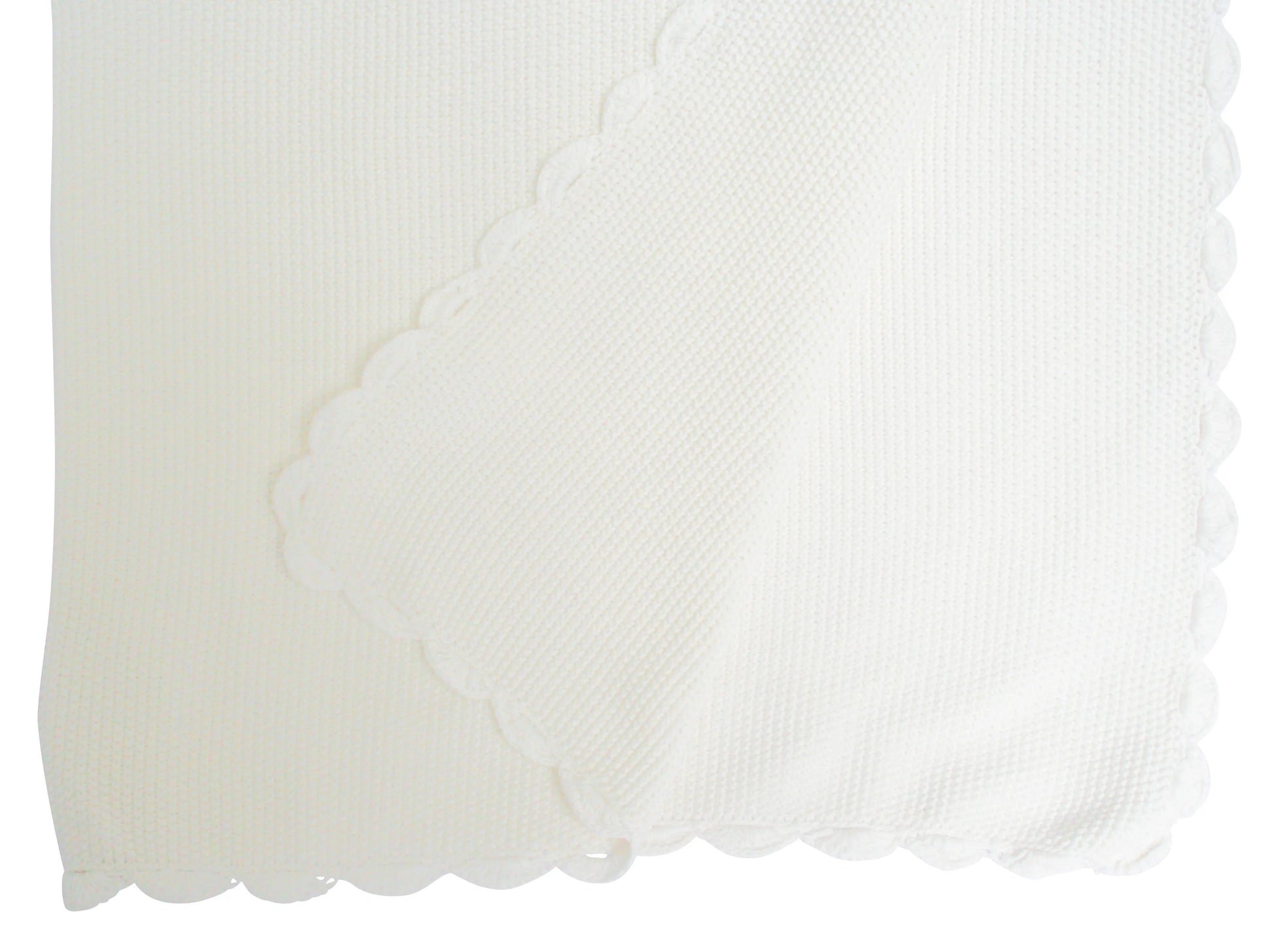 - Features scallop edge and moss stitch