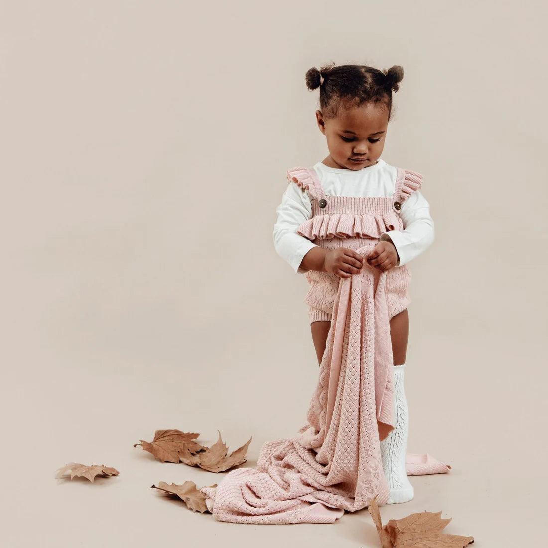 They come in an enchanting range of earthy tones that pair back with our collection perfectly and are a generous size at 120x100cm. The heirloom blankets' delicate knit pattern is just beautiful, making it the perfect baby shower or newborn gift.