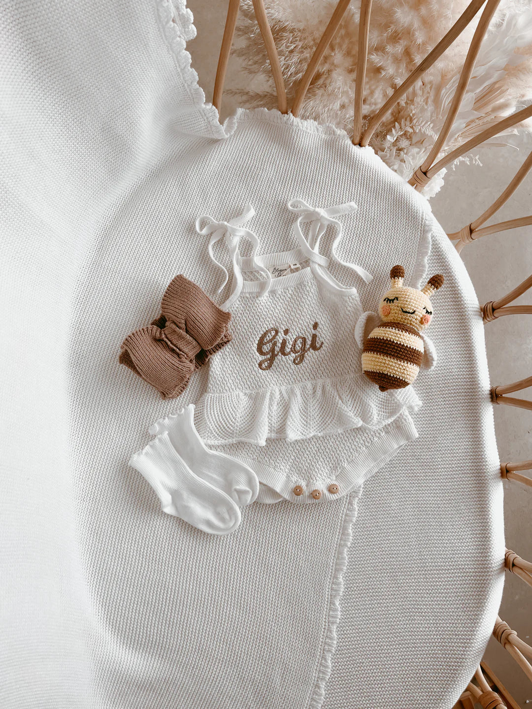 Each rattle is made by our beautiful artisans using cosy, soft 100% milk cotton, with a soft rattle and the sweetest hand stitched features. Intentionally designed to be the perfect size for little hands to hold, and treasured for a lifetime.
