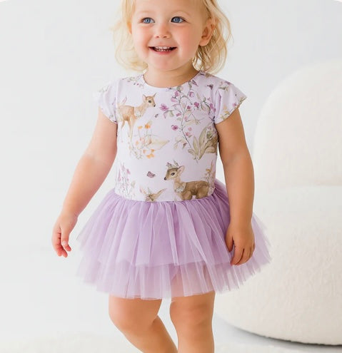 Our Onesie Tutu Dress is the perfect mix of playful style and practicality. With layers of the softest tulle, it creates a beautiful tutu effect while still offering the comfort of a bodysuit. Crafted from our renowned blend of ultra-soft bamboo and organic cotton, all featuring captivating prints that add a touch of elegance to this showstopper dress.