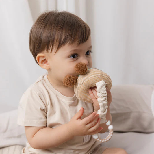 Keep your little one entertained when out and about with our gorgeous Mini Market Brunch stroller toys. Made from polyester plush and features a soft rattle to enhance the play experience. They attach easily to any stroller/pram hood, bumper bar, or even baby's play-gym or car seat.