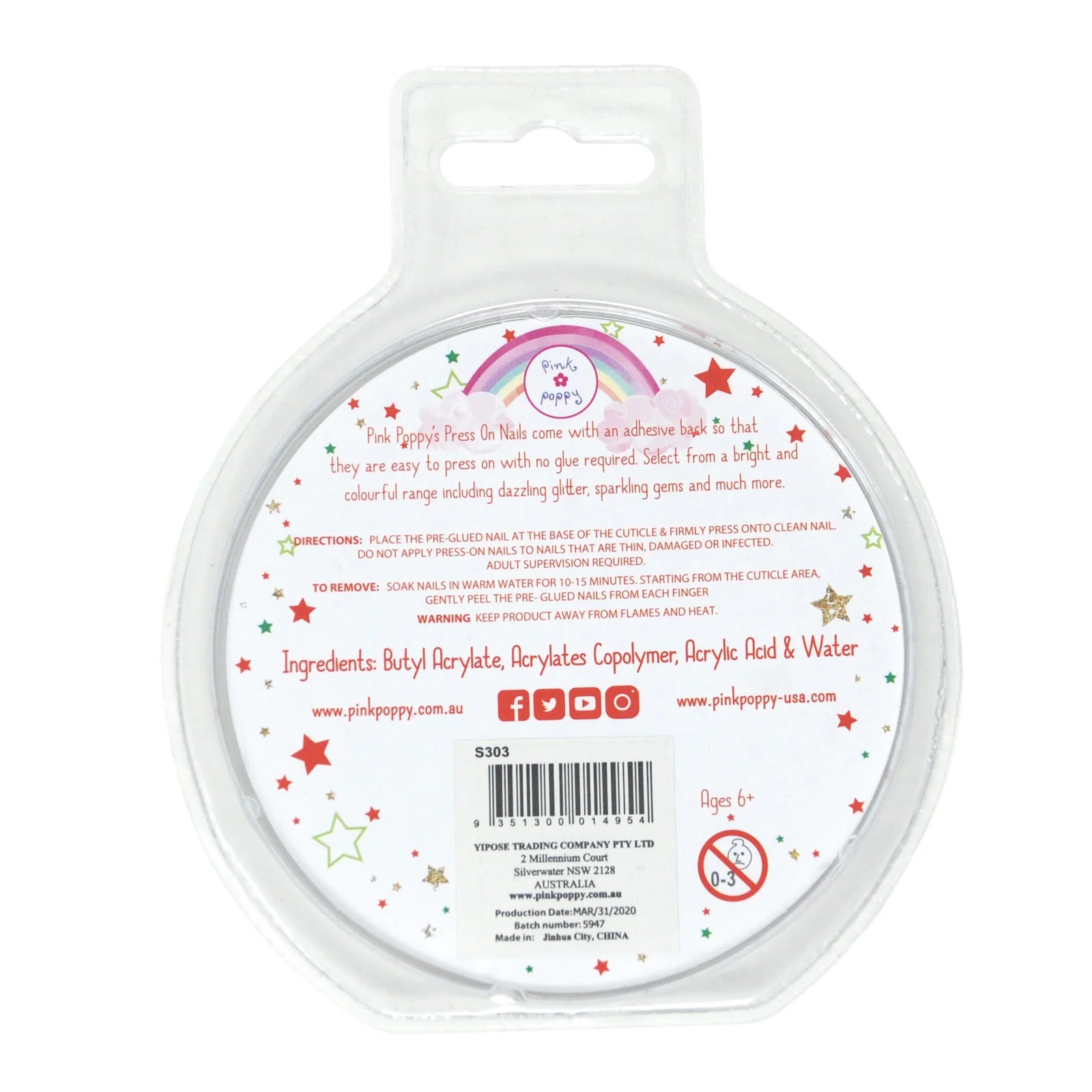 Pink Poppy's Christmas Press On Nails are are a great finishing touch for the festive season. The cute santa and snowman designs are sparkling with red and white glitter. They come with an adhesive back so that they are easy to press on with no glue required! Place the pre-glued nail at the base of the cuticle and firmly press onto clean nail for an instant makeover.