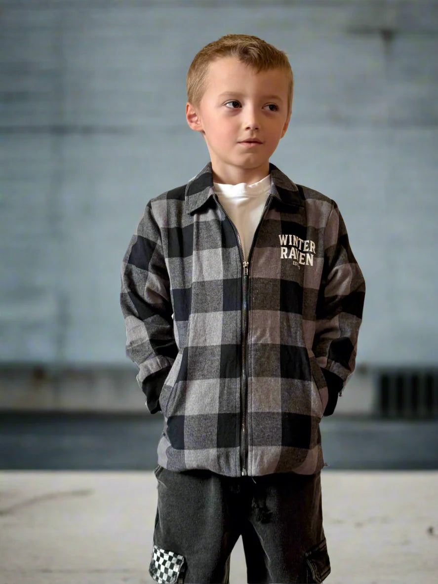 The Core Check Shacket in Mono brings our signature streetwear vibe to your little legend’s everyday wardrobe.