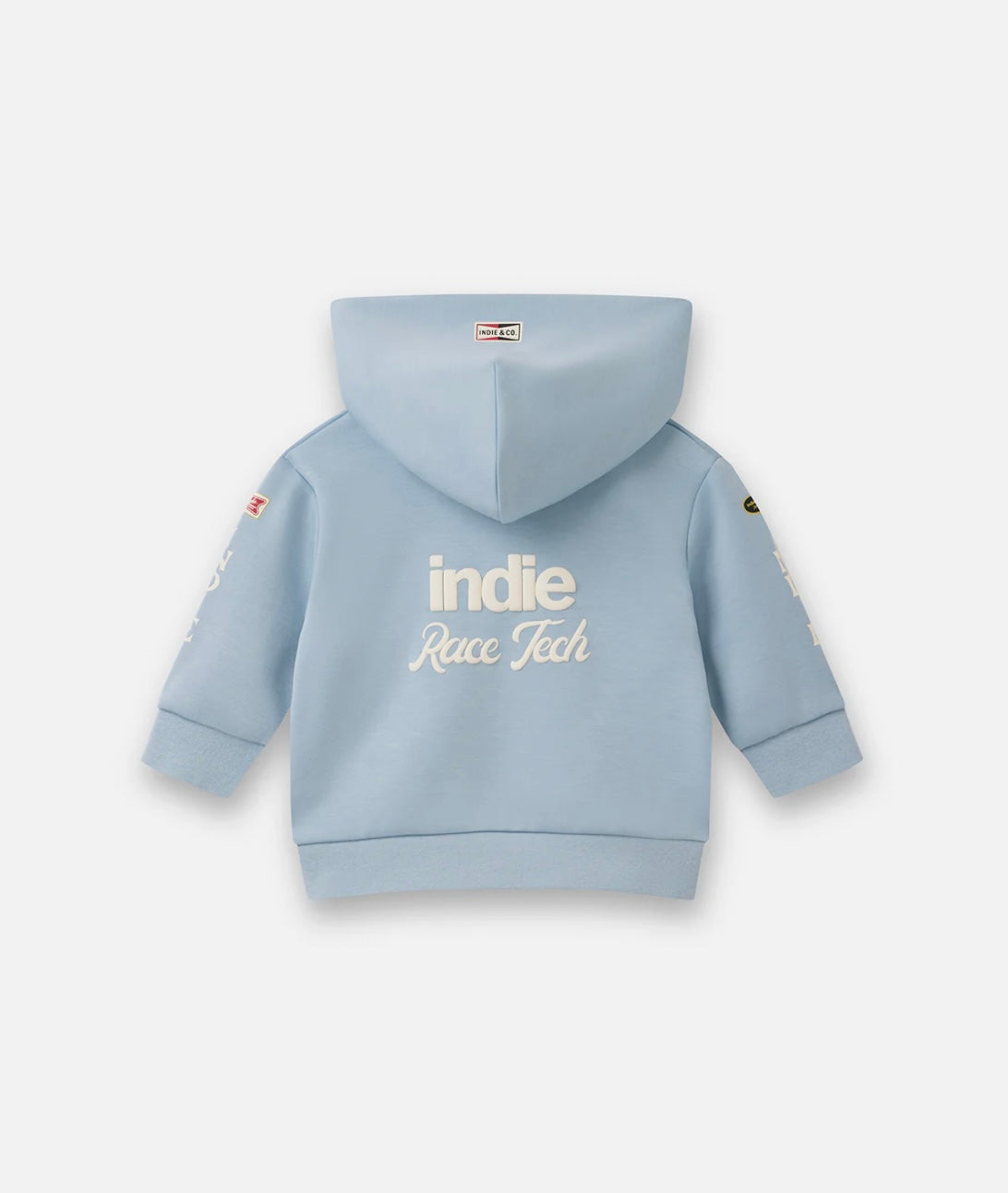 The Race Tech Hoodie — made from our new lightweight tech fabrication and covered in race car–inspired stickers straight from the Indie Art Department. Step out in comfort and be the coolest on (and off) the track this season.