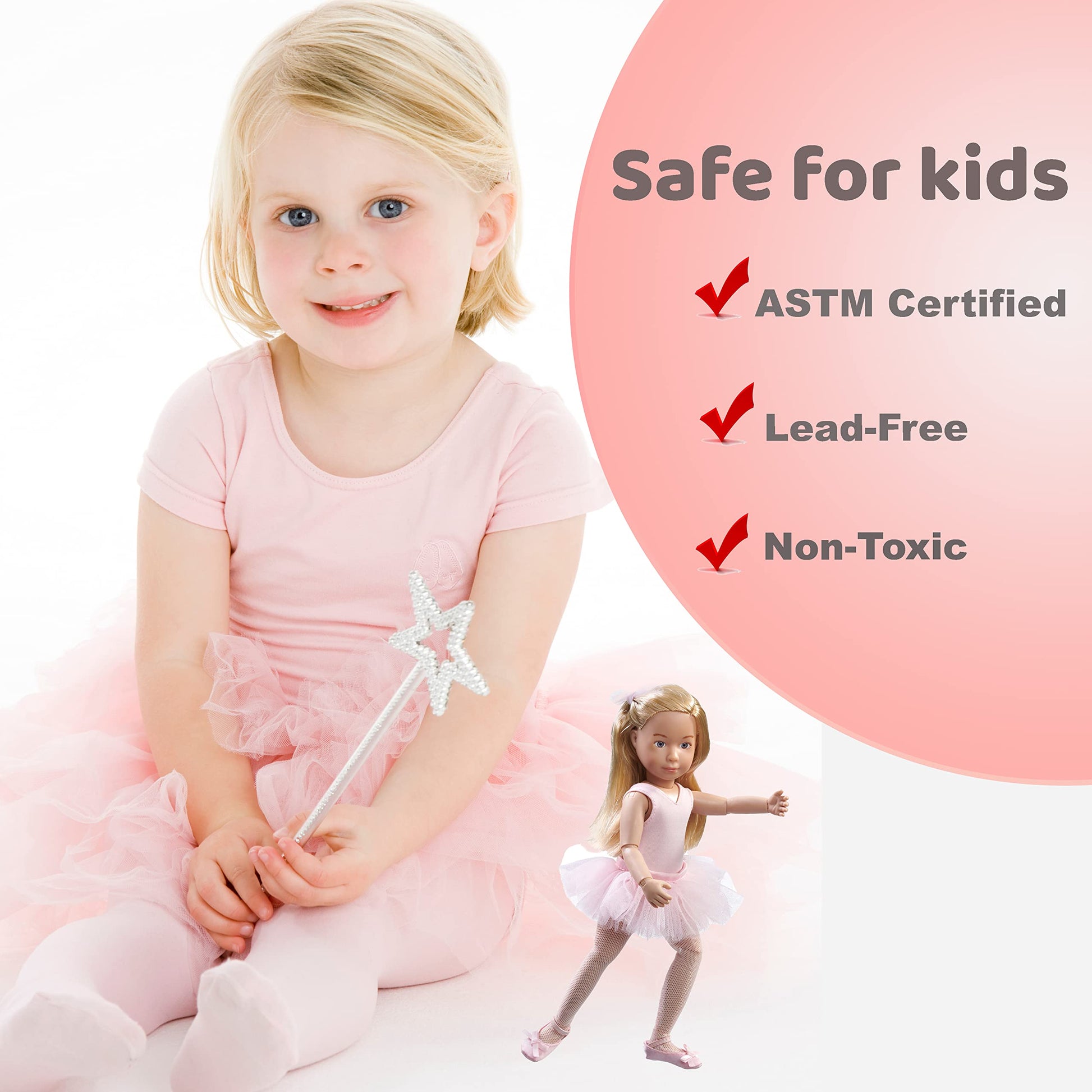 Vera as a ballet dancer set includes: 1 poseable doll with 1 leotard, 1 ballet skirt with leggings, 1 pair of ballet shoes, 1 hairband.