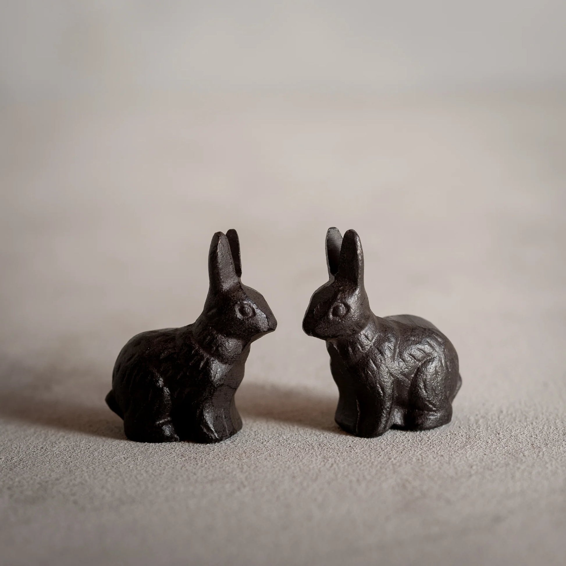 Made of heavy metal. Comes in a gift tin - set of 2. Each rabbit measures 5D x 5W x 5H centimetres.