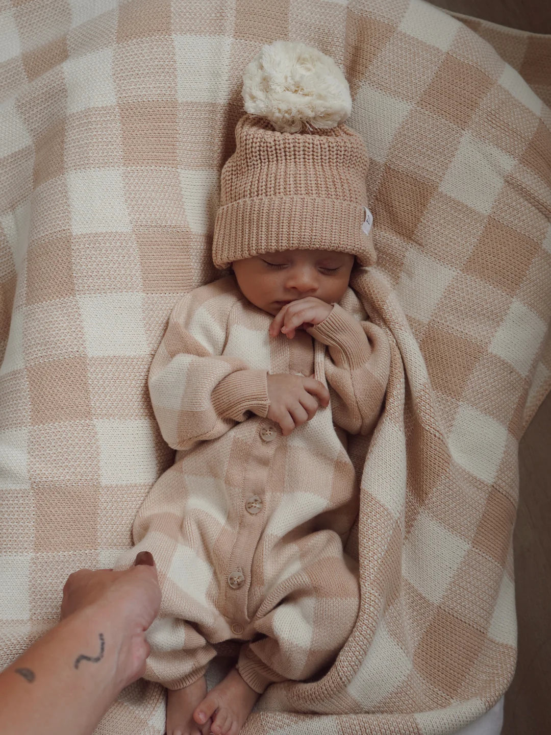 A beautiful knitted romper, designed with comfort in mind. Designed to be a timeless keepsake to remember just how teeny, tiny they were. A high quality piece to pass down to other siblings or a special something to pop in their keepsake box. Pair with the matching beanies & booties for the perfect winter outfit. Functional snaps at crotch for easy nappy changes.